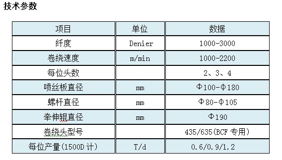 該設(shè)備用于膨體變形長絲BCF,該絲用于地毯、窗戶的密封條等。